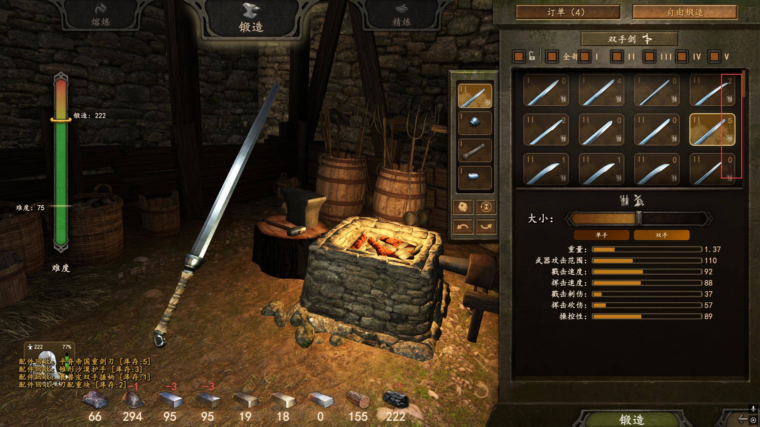 打造新武器时,系统按以下顺序消耗材料: